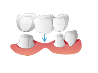 A dental bridge is a fixed dental restoration used to replace one or more missing teeth by anchoring to adjacent teeth or dental implants. It consists of two or more crowns for the teeth on either side of the gap — these two or more anchoring teeth are known as abutment teeth — with a false tooth/teeth in between.